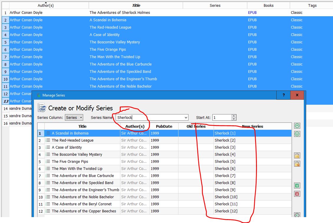 maybe this is a tread already discussed, but I've not found it. The problem is that, when I select several books and I try to modify the Group metadata assigning to all books the same series, Calibre assign to all also the same serial number (1). In the Tweaks section I tried "first free" and "next free", but the result is the same. There is a way to force Calibre to assign to each book a progressive number, even using any "empty" number, i.e. not yet assigned or from a removed book? I know that by assigning a number to a book at a time works well, but when you have to work on a large number of books is a little exhausting. Many thanks. Best regards, Gianni P.s. I work with latest Calibre 64bit version and Windows 10 |