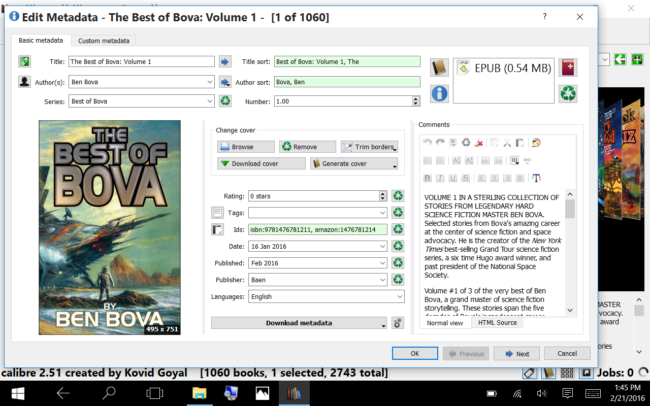 That is the Edit Metadata window. Not to be confused with the Editor or (book)Viewer You really need to use the correct names (or steps you used to get there) to keep us from heading down the wrong path ![]() A TEST to see if this tracks the various forms Preferences: Behavior: Edit metadata (single): all on one tab |