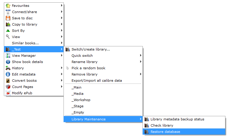 OK, last night when I did this, I kept everything the same, just moved the complete folder to another folder. Now, I opened Calibre, right-clicked on Calibre Library ... did as you instructed. What showed up was a 'Blank Book Cover' on the right-hand side where an ebook cover would normally be. There are also more options under the Calibre Library now. But still no books are showing. Everything is empty. There are 2 files in my Calibre folder: metadata.db and metadata_db_prefs_backup.json I'm assuming those files should be there. Am I missing some step? |