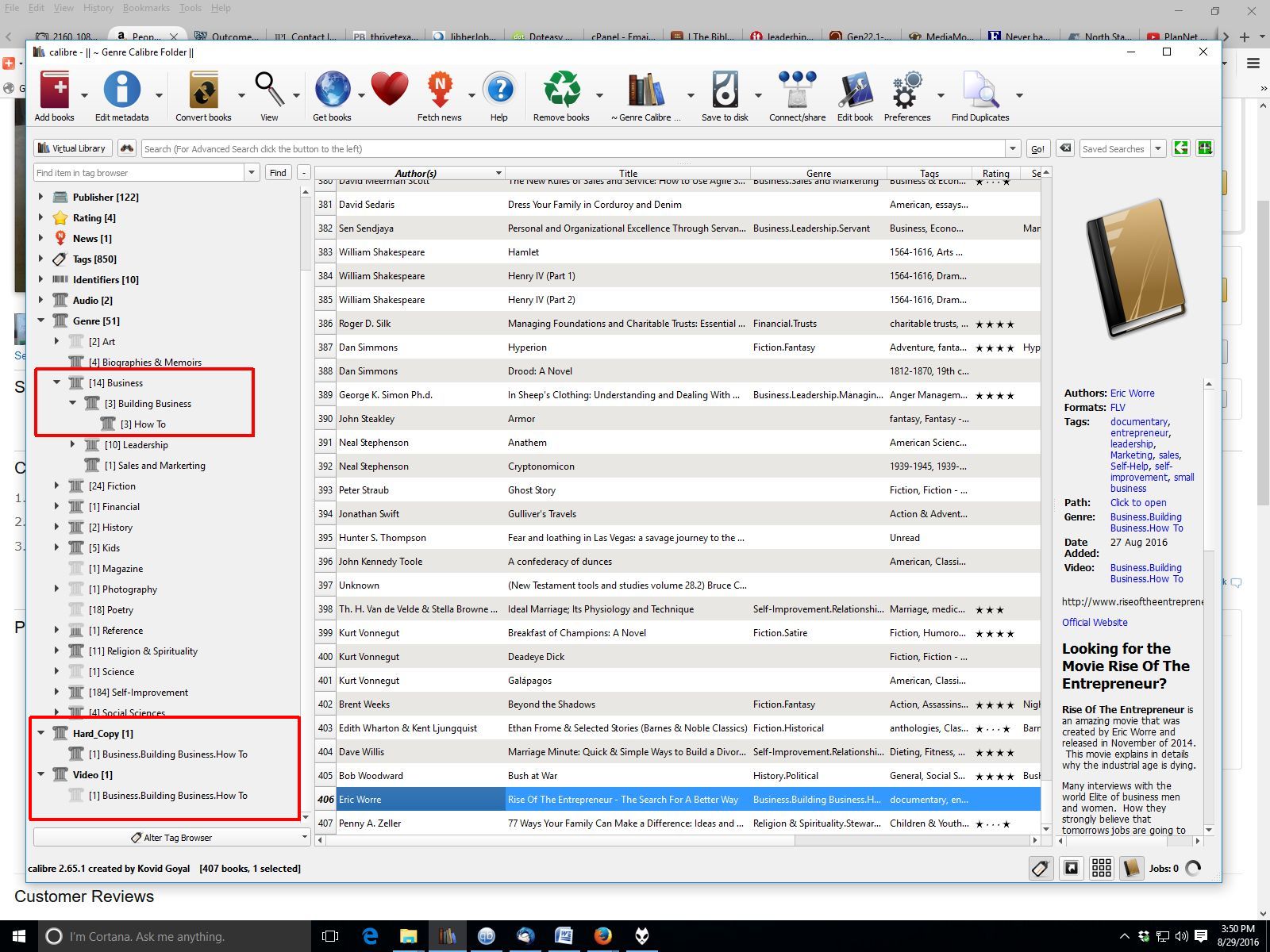 But why do you want Hard Copy and Video to be separate hierarchical categories, why not rely on the formats or use a tag like custom column (Media: Audio, Ebook, Hard Copy, Video, Game...) and use existing Genre column. BR |