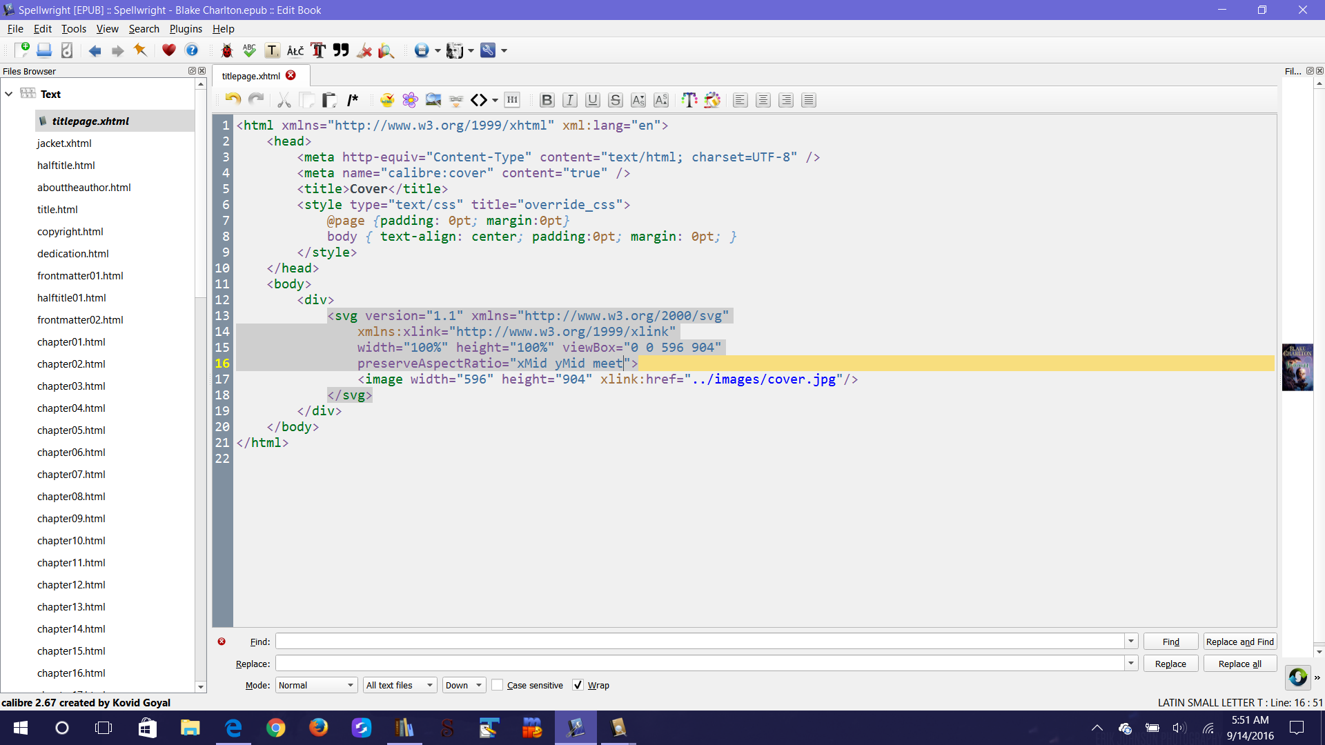 I like my Covers to keep the same aspect ratio whatever device I read them on. So I usually go in and change the svg from preserveAspectRatio="none" to preserveAspectRatio="xMid yMid meet". This centers the cover, as well as automatically resize it to fit the screen while preserving the aspect ratio. I would like to know if there is an easy way to do this when I replace or add a new cover to the file without having to edit every single file? Like an option in "polish ebook" and add/replace cover. I have a quite a few ebooks, and it is very time consuming to have to edit each book. Thank you, Daniel |