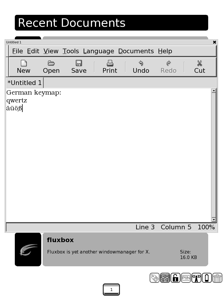 Therefore we need a way to change the keymaps of the keyboard. xmodmap is one way. Right now only a German keymap is included. [EDIT II: not anymore true.] A keymap is just a simple text file with keycodes on the left, the letter/symbol on the right. Code: