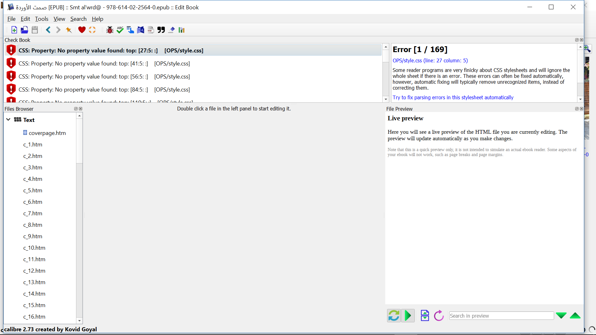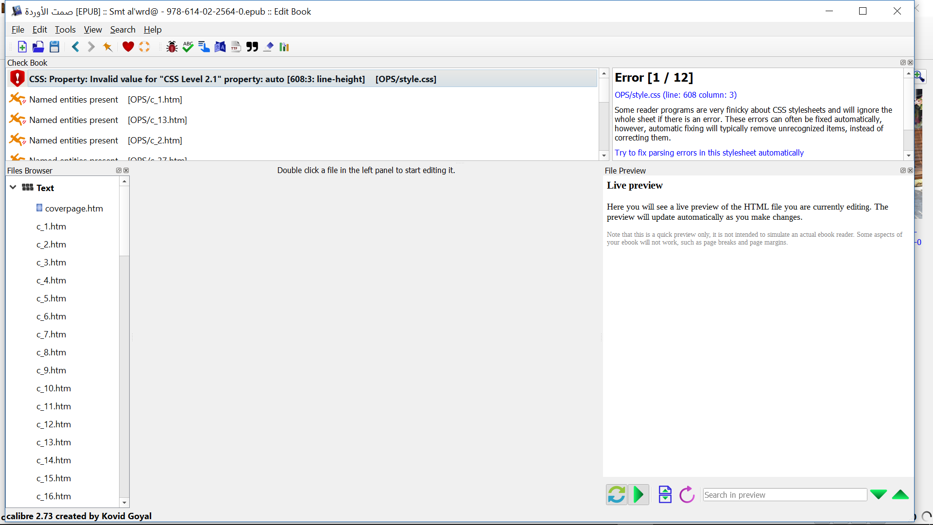 unable to fix epub file