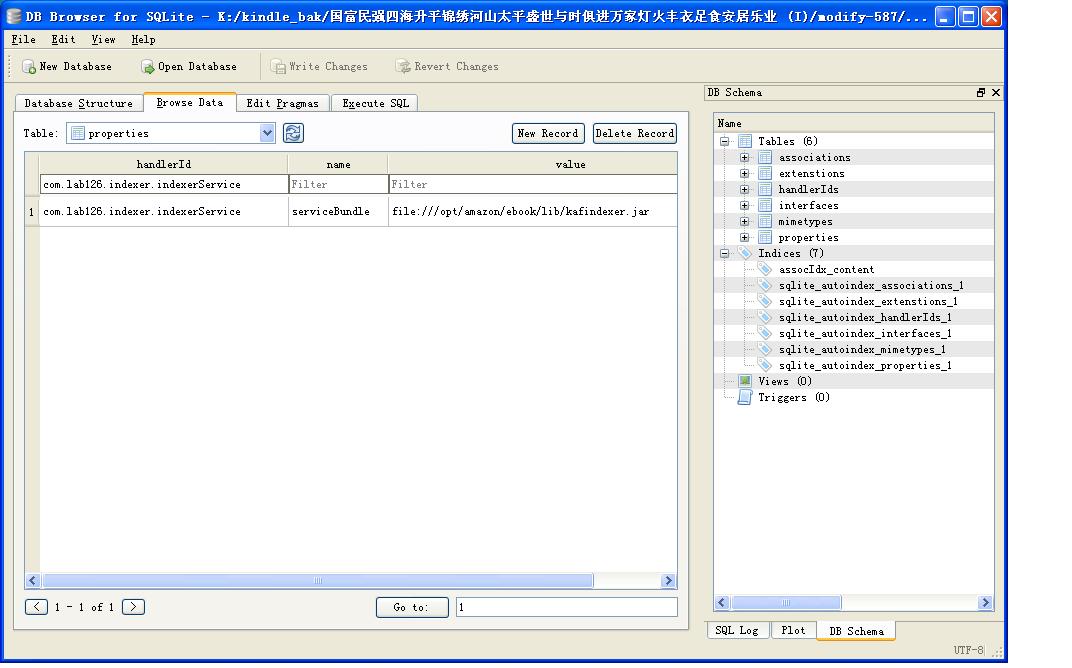 Open the /var/local/appreg.db in DB Browser for SQLite and found the associations of the indexer. (Post in the attachment.) Then modify the database file or the prereg.db in /opt/var/local.sqsh and remove the associations or delete the kafindexer.jar file from the root file system. I think the first method has more possibility to success. Because my Kindle is waiting for rescue, I will verify for it after my Kindle is debricked. EDIT: These ways makes Kindle show repair screen, so do not use these ways. We should think out another methods. Last edited by Mr.Samuel; 02-15-2017 at 11:45 AM. |