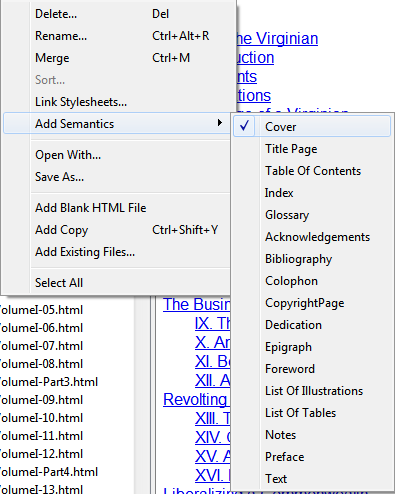 At a quick glance, you can see which semantics are already assigned to the file (if any): Sigil 0.9.6: