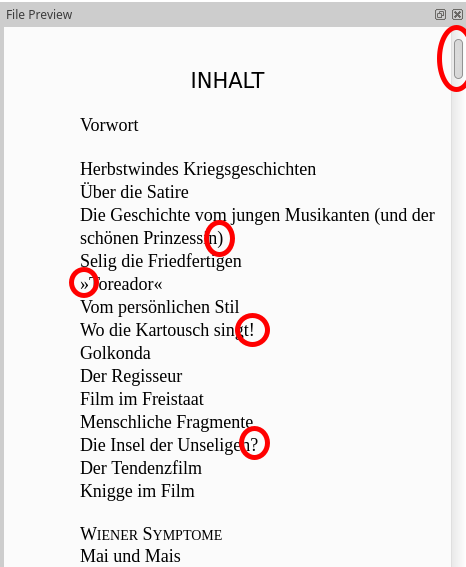 Normally (in usual books) is enough an one-way navigation, that is from Contents to the headers. (Even that isn't necessary.) In my books is absolute essential to get an two-way navigation: there and back ... and more. Keyword: something like <span class="return">top</span> Last edited by chaot; 02-21-2017 at 02:46 PM. Reason: <top>→something like <span class="return">top</span> |