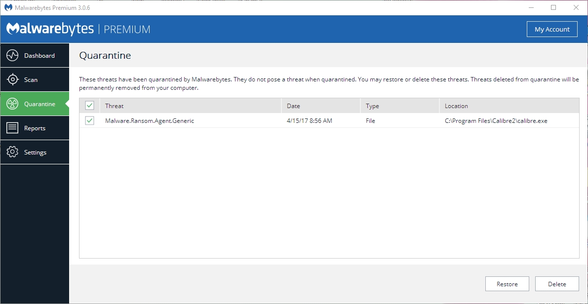 I'm wondering why Malwarebytes identified it specifically as a "Malware.Ransom.Agent.Generic" threat.
