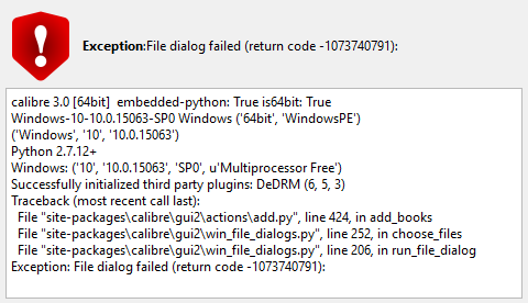 Error 1073740791 on trying to add books in v3.0 64-bit