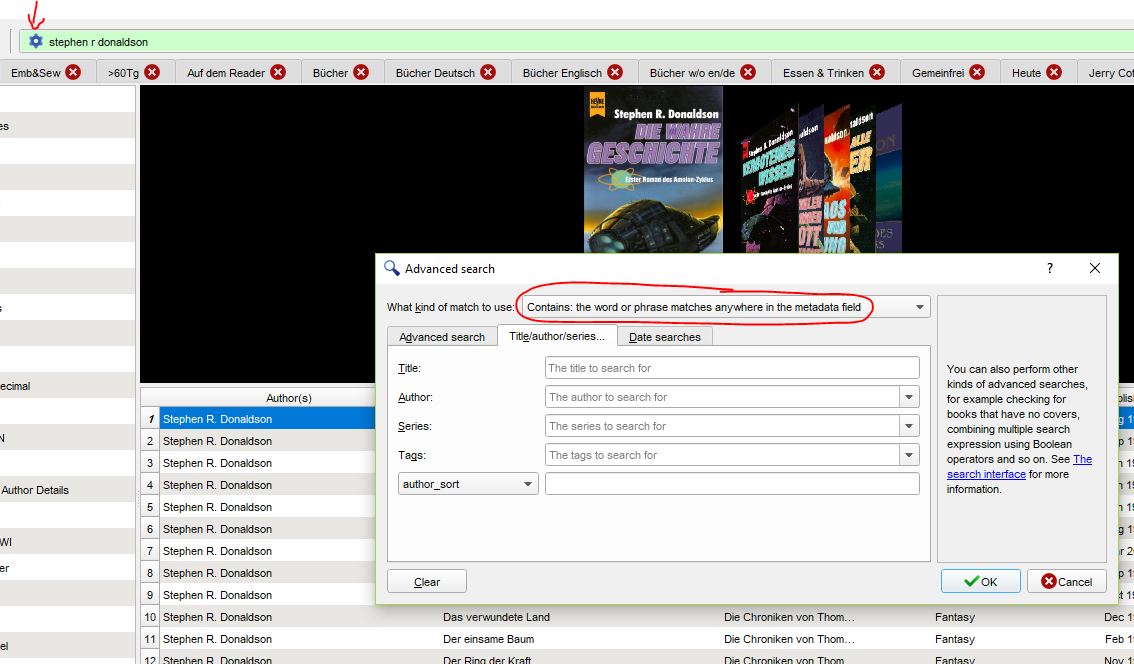 stephen r donaldson finds all Stephen R. Donaldson Take a look on the little gear left in the search bar and / or Preferences ->Interface ->Searching |