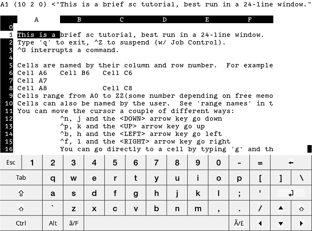 Version: 7.16-4 Authors: James Gosling, Mark Weiser, Martin Schulze and others. From the README: "This is a much modified version of the public domain spread sheet sc, originally by James Gosling, and posted a number of years ago by Mark Weiser as vc." Kindle background: There used to be a paid active content spreadsheet application on the Amazon website. Some attempt was made by twobob to port gnumeric to the kindles. See threads: https://www.mobileread.com/forums/sh...ht=spreadsheet and https://www.mobileread.com/forums/sh...ht=spreadsheet It actually seems to have run on twobob's kindles.. but he couldn't make a public release. The application here is not a graphic one like gnumeric, but is quite usable and has a lot of features. Needs: Jailbroken Kindle, KUAL, kterm. Should work on: All Kindles from KT1 onwards. Tested OK on: PW1. Installation and usage: