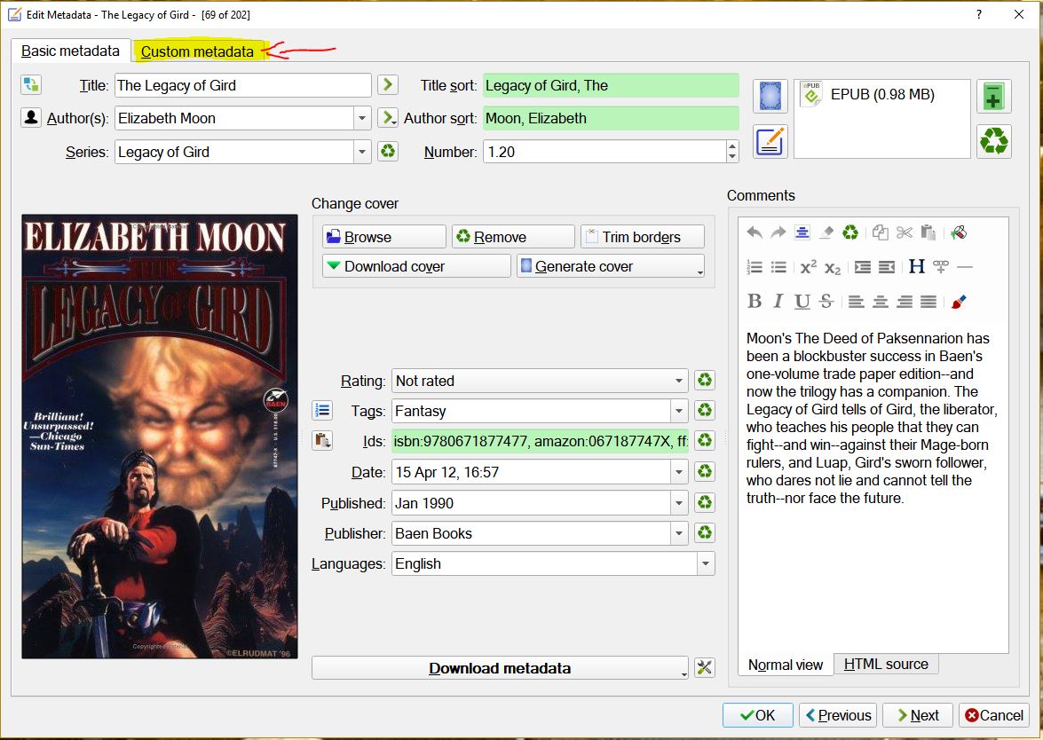 i dit all u the thing you told me. and i also see the custom metadata. but ist complicated like this to fill in those booknumbers one by one. therfore i take the Uitgever (See the first posting here) also i made a new collum. and i wanted to see in the other screenshot (See the one whit the bookcover of Perry Rhodan