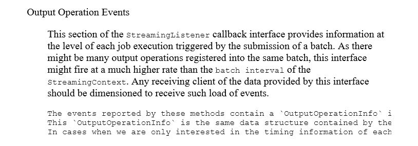 The events reported by these methods contain a `OutputOperati This `OutputOperationInfo` is the same data structure contain In cases when we are only interested in the timing informatio these all three lines have more texts but missing in pdf i used this command in extra css but still didn't work Quote: