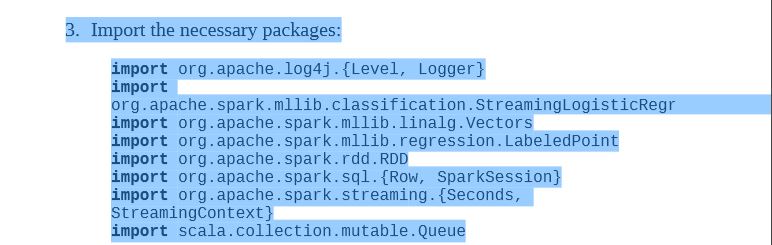 its end on "Regr" here is full line org.apache.spark.mllib.classification.StreamingLog isticRegressionWithSGD Last edited by issybird; 10-12-2017 at 01:07 PM. |