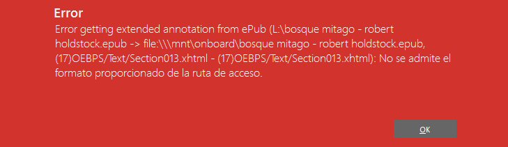 But I get an error when the option " ePUB Books: Expand marked text" is selected. If I accept 9-10 times the error , the program exports good the notes and the highlights. |