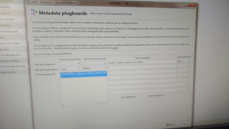The transfer did not put the books in order!! BTW my Kindle is the oldest model but it's shown in the plugboard as Kindle2 Last edited by davecabezo; 12-26-2017 at 10:00 AM. Reason: add more description |