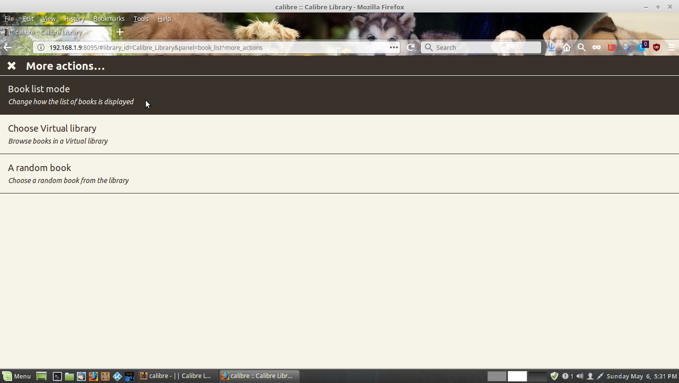Like this default view: Like this Detailed list A list with thumbnails and some book details: This Custom list A customizable list (see Preferences->Sharing over the net->Book list template): bernie |