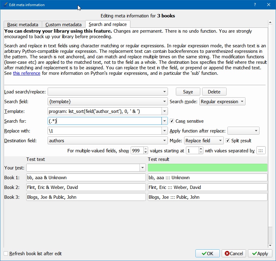 As in [Title] [Author C & Author F & Author A] will end up [Title] [Author A & Author C & Author F]. Of course most of my anthologies have many more authors than that. And there are a hundred or more anthologies in my library. Sometimes publishers list authors by first name, sometimes prevalence or category or last name, etc. Sometimes I add them manually and it's prioritized initially based more on my recognition. I had hoped there was something that would work like the Tag editor which automatically alphabetizes the tag names. But the Manage authors looks like it's to edit spelling of individual authors' names and preferred sort order of [Pref., First, Last, Suf.]. Thank you! Last edited by meghane_e; 06-22-2018 at 01:02 PM. |