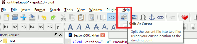 or just use Search/Replace to insert the Sigil split marker: Search: "/><img Replace: "/><hr class="sigil_split_marker" /><img and press Edit > Split At Markers (F6). 4. Now you would have each SVG in its own file: Quote: