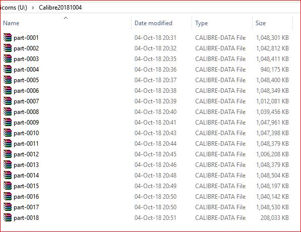 Your exported Calibre file folder should look something like (note: The Icons are from WinRar. yours may be different. but the TYPE should be the same)