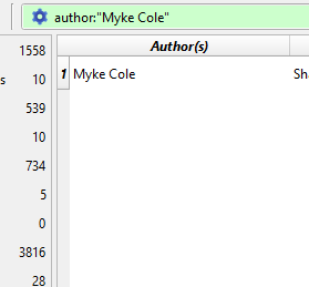 Note: a search for author:Cole would return all nine books (plus any books by any other author with Cole in their name). But you would be better to clean up the metadata for all these books. The Quality Check plugin would help with this, or just edit the metadata for each book and ensure that the Author and Author Sort fields are the same for each author. |