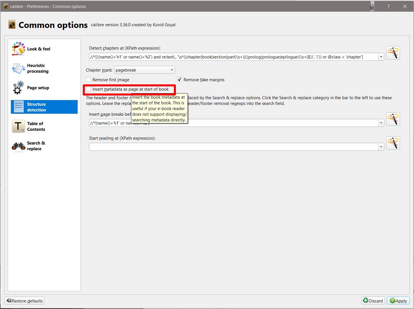 When I convert a book using Calibre, I've noticed that there's often a brief synopsis of the novel in the metadata box. Is it possible to include this at the beginning of the book? If so, how do I do this?