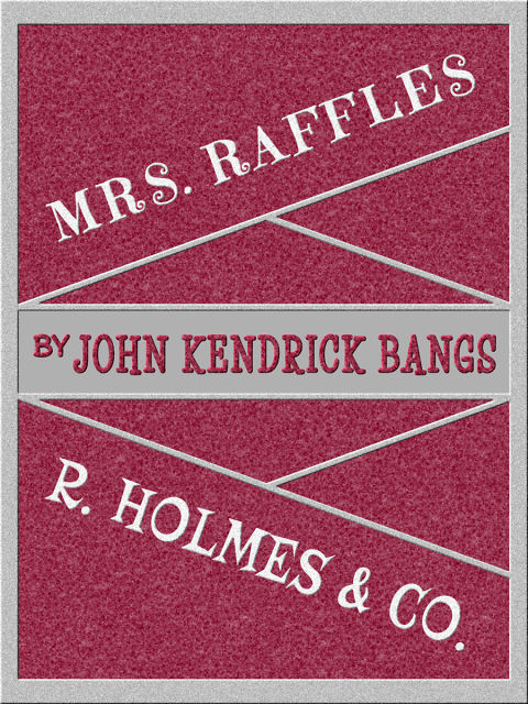• AND • Four Bonus StoriesBy JOHN KENDRICK BANGS (1862–1922) ILLUSTRATIONS BY Albert Levering (1869–1929); Peter Newell (1862–1924); Edward Penfield (1866–1925) ============= The contents of this book were first published 1899 through 1908. Text and illustrations are in the public domain in countries where the copyright term is “Life+90” or less, and in the USA. ============= ### Mrs. Raffles (1905) The widow of A. J. Raffles (the gentleman thief conceived by E. W. Hornung), continues the family legacy of crime—but in America. Her adventures are narrated by her confederate and former suitor, Harry “Bunny” Manders, the devoted friend and accomplice of her late husband. ### R. Holmes & Co. (1906) If a master detective sired a son with the daughter of a gentleman thief… The story begins by pitting Sherlock Holmes against criminal mastermind A. J. Raffles. Holmes falls in love with Raffles’ daughter, and their son Raffles Holmes, now grown, possesses the talents and tendencies of both sides of the family tree. ### Editor’s Appendix (1899–1908) For readers whose appetites have been whetted for more Holmes parody: three stories taken from other Bangs books, and a brief extract from a newspaper piece. ======================= John Kendrick Bangs (May 27, 1862 – January 21, 1922) was an American author, humorist, satirist, editor and lecturer. Between 1884 and 1906, he worked as editor at a number of magazines, among them Life, Munsey’s, The New Metropolitan, the Harper’s magazines, and the foremost humor magazine of its day, Puck. A highly popular and prolific writer, he had more than sixty books published. He wrote extensively in the genre of “Bangsian fantasy,” concerning famous fictional or historical individuals and their interactions in the afterlife. ======================= Texts and illustrations were obtained from the Internet Archive and the Library of Congress. OCR and printer’s errors were silently corrected; punctuation, diacritics, and italics formatted; some spelling and punctuation normalized. Illustrations manually cleaned and enhanced. Illustrations by Sydney Adamson (1872–1958) have been omitted due to copyright restrictions. Story headers are cross-linked to individual Tables of Contents. Versions available WITH and WITHOUT illustrations. Enjoy! ![]() This work is assumed to be in the Life+70 public domain OR the copyright holder has given specific permission for distribution. Copyright laws differ throughout the world, and it may still be under copyright in some countries. Before downloading, please check your country's copyright laws. If the book is under copyright in your country, do not download or redistribute this work.