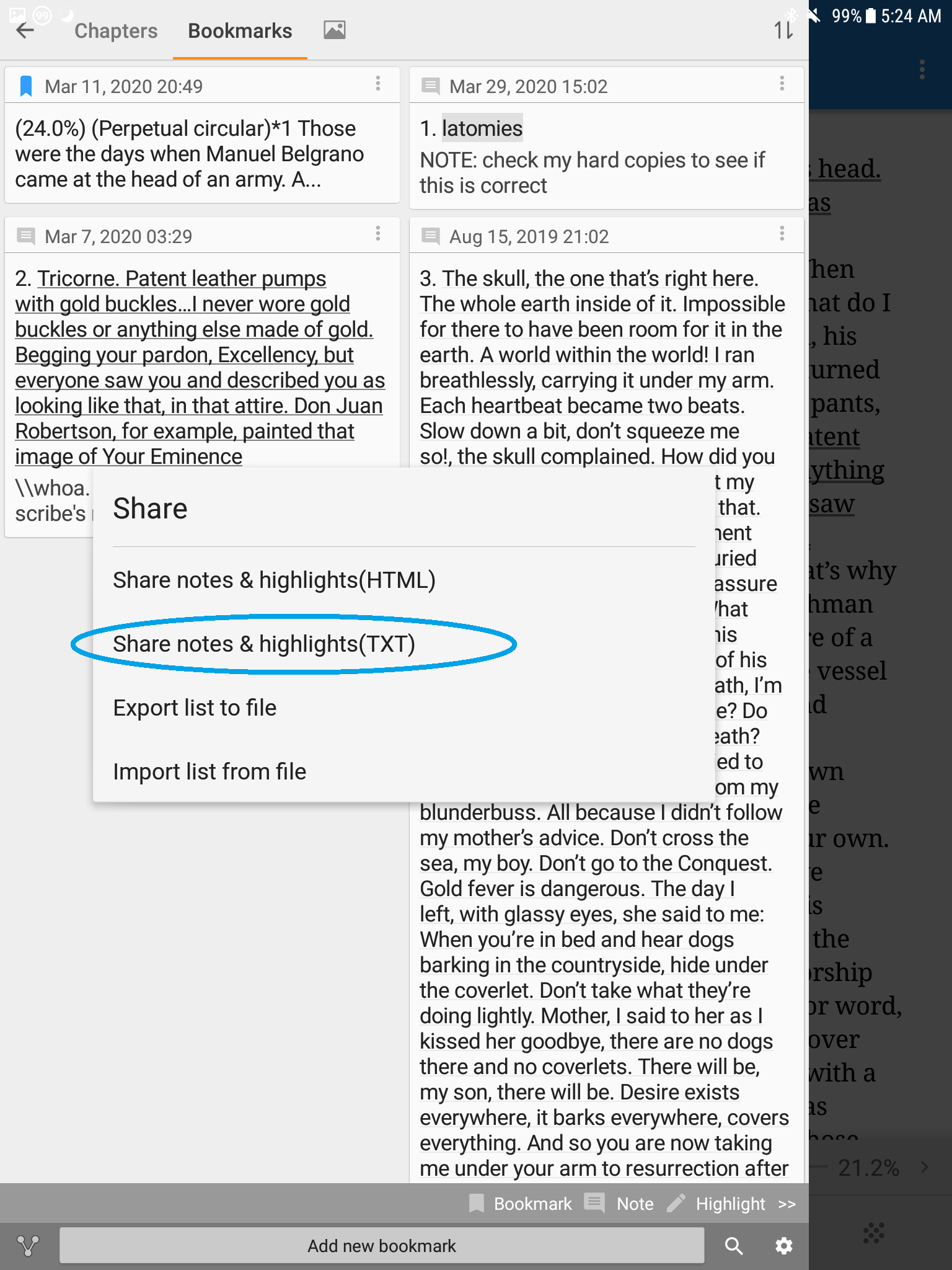 For Moon Reader, could someone explain how you export highlights with captured screen