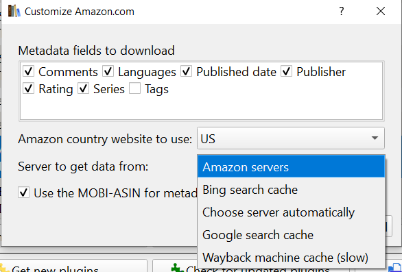 Thanks for that info. Can I be steered toward a download of a recent proven plug-in for Amazon Metadata downloads? I use Calibre a lot but rarely get under the hood. Thanks!