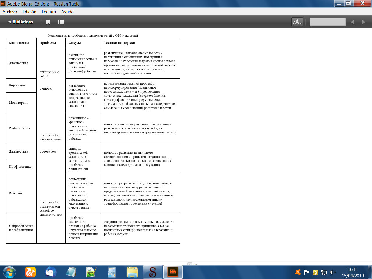 Yes of course! For example, here is a large table. In the mobile application, it is poorly displayed. <table class="tablemobile"> <caption>Компоненты и проблемы поддержки детей с ОВЗ и их семей</caption> <tbody> <tr> <td class="center"> <strong>Компоненты </strong> </td> <td class="center"> <strong>Проблемы </strong> </td> <td class="center"> <strong>Фокусы</strong> </td> <td class="center"> <strong>Техники поддержки</strong> </td> </tr> <tr> <td> Диагностика </td> <td rowspan="3"> отношений с собой <br/><br/><br/>с миром </td> <td> пассивное отношение семьи к жизни и к проблемам (болезни) ребенка </td> <td> развенчание иллюзий «нормальности» нарушений в отношениях, поведении и переживаниях ребенка и других членов семьи в противовес необходимости постоянной заботы о ее развитии, активных и комплексных, постоянных действий и усилий </td> </tr> <tr> <td> Коррекция </td> <td rowspan="2"> негативное отношение к жизни, в том числе депрессивные установки и состояния </td> <td rowspan="2"> использование техники процедур переформулирования (позитивное переосмысление и т. д.), преодоления логических искажений (сверхобобщения, катастрофизации или преуменьшения значимости) в базисных посылках (стереотипах осмысления своей жизни) родителей и детей </td> </tr> <tr> <td> Мониторинг </td> </tr> <tr> <td> Реабилитация </td> <td rowspan="3"> отношений с членами семьи <br/><br/><br/>с ребенком </td> <td> позитивное – «рентное» отношение к жизни и болезням (проблемам) ребенка </td> <td> помощь семье в направлении обнаружения и развенчания ее «фиктивных целей», их ниспровержения и замены «реальными» целями </td> </tr> <tr> <td> Диагностика </td> <td rowspan="2"> синдром хронической усталости и «автономные» проблемы родителя(ей) </td> <td rowspan="2"> помощь в развитии позитивного самоотношения и принятия ситуации как «жизненного вызова», анализ «развивающих возможностей» детского присутствия </td> </tr> <tr> <td> Профилактика </td> </tr> <tr> <td> Развитие </td> <td rowspan="2"> отношений с родительской семьей со специалистами </td> <td> осмысление болезней и иных проблем в развитии и отношениях ребенка как «наказания», чувство вины </td> <td> помощь в разработке представлений о вине в направлении поиска иррациональных предубеждений, психогенетический анализ, психодраматические розыгрыши и «семейные расстановки», «целеориентированная» трансформация проблемных ситуаций </td> </tr> <tr> <td> Сопровождение и реабилитация </td> <td> проблемы частичного принятия ребенка и чувства вины по поводу непринятия ребенка </td> <td> «терапия реальностью», помощь в осмыслении невозможности полного принятия, а также позитивных функций непринятия в развитии ребенка и семьи </td> </tr> </tbody> </table> |
