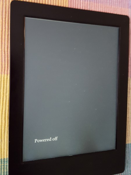 I tried connecting to Windows 10 machine. No go. Possible I did not manage to hit the Connect button, since I don't know where it is. Connected USB cable, Kobo "on". Tried to find Connect button. Turned Kobo off and back on (to extent those flashing lights mean anything!). Disconnected then reconnected USB cable. Tried again--less carefully--to find Connect button. A couple more details I forgot to add in the original post:- Resetting the device (paperclip in the pinhole) also causes the power button light to flash, but the screen still does not change Created a photo, should show here (first time adding image). Kobo "on" and backlight on. Photo angled as that was a quick way to avoid any shadowing on the screen caused by the camera and me. Curious if anything new occurs to you. At this point it seems likely the device is a goner. |