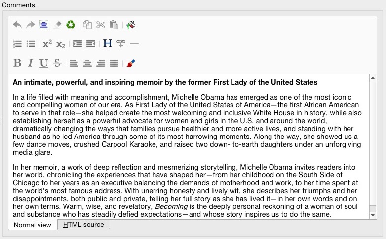 Joined the forum because I have a very specific question I cannot find the answer to: some of the summaries on my Kobo Aura show line breaks and others look perfectly fine. Sometimes there's also an abrupt font change. I use the Calibre 'Comments' field to add the summaries. In Calibre everything looks fine. When I check the metadata html, the summary is coded in seperate lines, rather than one line, which is what's causing the linebreaks: When there's a font change, it's also reflected in the html. I've had this happen with summaries I got via 'download metadata', that I c&p into the box or that were already embedded in the file. The only thing that fixes it is editing the html or manually replacing the space where the line break is in the 'Comments' field. My question is, does anybody have any idea why this happens and how I can fix it in bulk or prevent it from happening in the future? I have 2000+ books in my library, checking and manually changing all of them would be a huge effort. Thanks! |