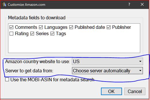 What Amazon site did you set? How was server set. OH ![]() Preferences: Plugins: Metadata Sourc: Amazon: <configure (button near bottom) |