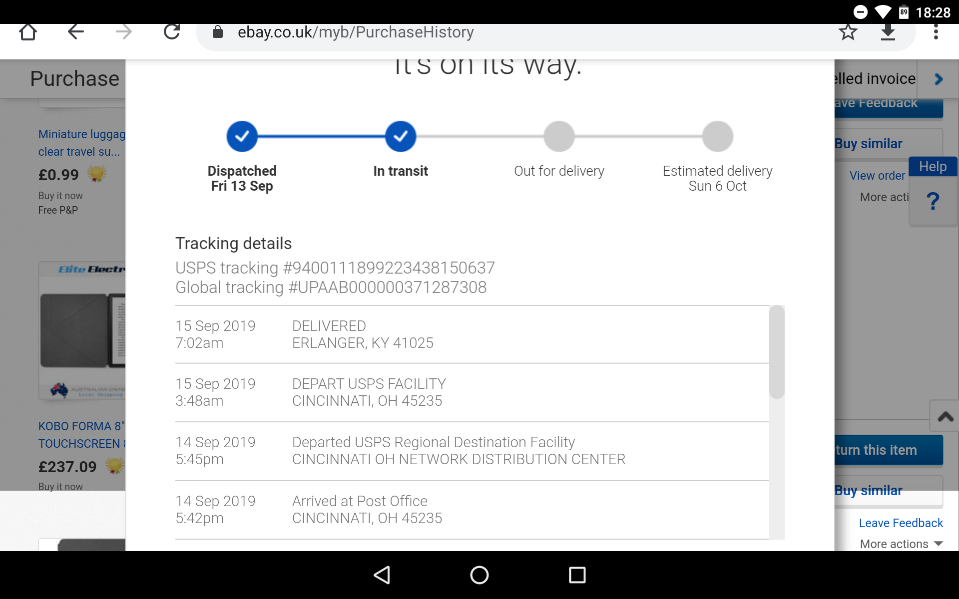 I sold something on eBay about six months ago that was shipped to England. (eBay did this automatically, I didn't even know I was signed up to sell internationally.) Just like this package, I was responsible for shipping it to Erlanger KY, from there eBay repackaged and shipped internationally. I think it took a couple days to get into the "international" tracking system, but once it got there I was able to follow it using the UPAxxx number. I think it went through three different shippers altogether.