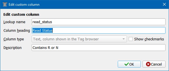 I did get it work, shut everything down and restarted; it seemed to be fine. However, it doesn't do what it says it should; for example, there are multiple books that have the Read Status column = "N" that should say have the new column say "yes", but actually says "no'.