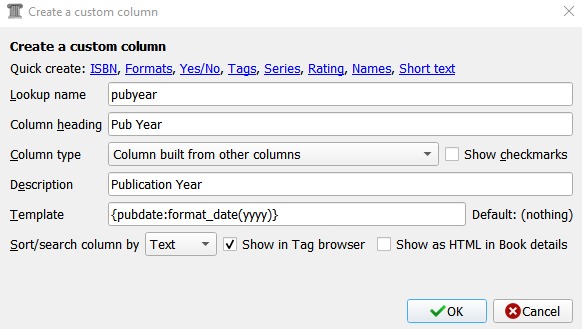 I had a question about how I could have a custom column that only gives me the year, depending on the date of publication and that can be seen on labels?