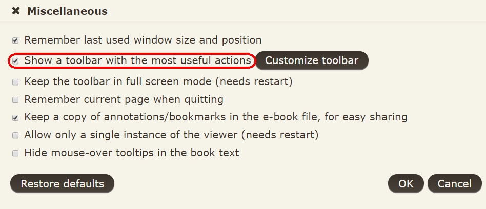 For all you who have not liked the Calibre 4.0 viewer because the toolbar was removed, you can now use the viewer from Calibre 4.4 as you can turn on the toolbar and even configure the toolbar.