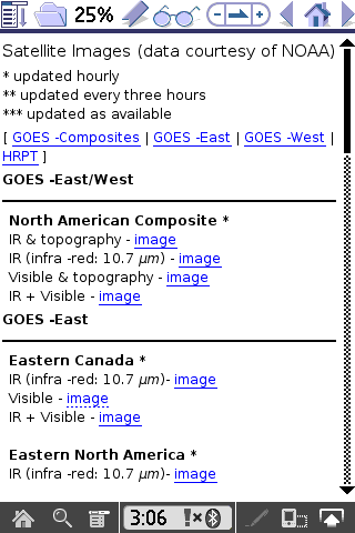 I would like to get a weather satellite image to plucker. The problem is that the image name suffix changes hourly. The valid name can be derrived from the current time: eg. suffix _1200.jpg is for 12:00. What I would like to achieve is the following: each time I sync, I would like to retrieve the most recent image and put it to always the same plucker document . Is there a way to do this? (addidtional problem: the image from the above example, _1200.jpg, is usually refreshed at around 12:10). Thanks for your help Angrest |