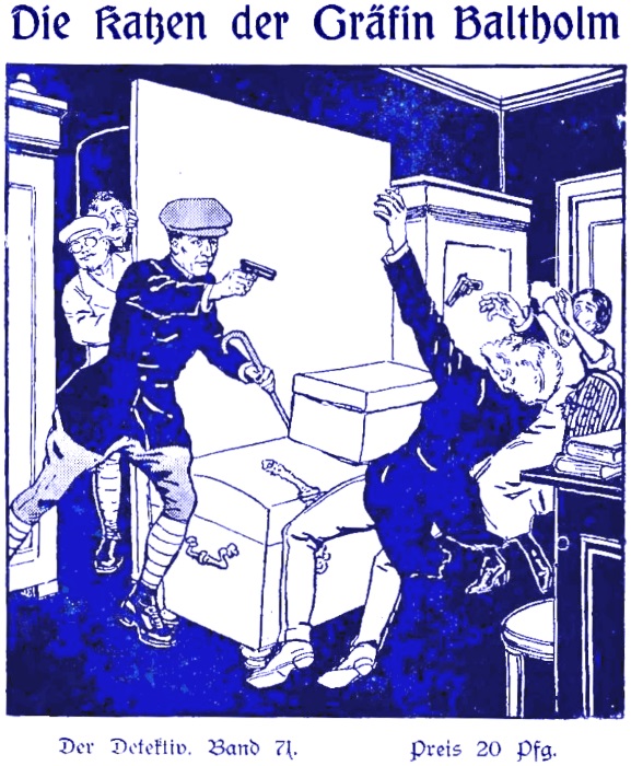 Harst und ich trafen, mit dem Abendzuge von Trelleborg kommend, in Stockholm ein, wo wir im Hotel Miramare dicht am Hafen abstiegen. Wir hatten eine weite und eilige Reise hinter uns. Der Brief Professor Söderblooms war uns nach Kalkutta in Indien nachgeschickt worden. Wir hatten hier den Fall Ralbrout soeben erledigt, den ich im vorigen Band als »Geheimnis der Insel Morton« geschildert habe. Ein Brief, der uns aus dem Märchenlande Indien nach Europa zurücklocken konnte, mußte schon einen ganz besonderen Inhalt haben. So war es auch. — Der Kater der Gräfin Baltholm. Wir saßen auf dem Achterdeck der schlanken Motorbarkasse, an deren Heck die Polizeiflagge wehte. Wir waren unserer vier: der ernste Kriminalinspektor Löngaard, der übernervöse, kleine Redakteur Jakoobsen, Harst und ich. Die Polizeibarkasse kam von Homnäs, einem Dorfe am Mälar weit oberhalb von Stockholm. Wir waren auf eine Anzeige hin nach Homnäs gefahren, hofften dort die fünf Flüchtlinge zu finden und fanden fünf Engländer, die sich als leidenschaftliche Angler in Homnäs einquartiert hatten. This work is assumed to be in the Life+70 public domain OR the copyright holder has given specific permission for distribution. Copyright laws differ throughout the world, and it may still be under copyright in some countries. Before downloading, please check your country's copyright laws. If the book is under copyright in your country, do not download or redistribute this work.