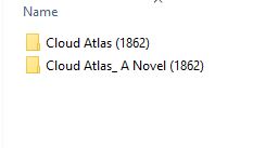 Nearly every time I rename a book in my calibre library, it creates a new folder with a new set of files (book, metadata, cover)… so the storage space is QUICKLY climbing. The "find duplicates" plugin doesn't seem to be able to look for duplicate book files in the library, just titles/info within the program itself. Any thoughts / suggestions? Example posted - I removed "A Novel" from the title of this book, and now I have TWO folders which EACH contain a copy of the book file, etc. They're listed with the same # (1862), so Calibre seems to know it's the same... but again, the book and its files were duplicated in a new folder... |