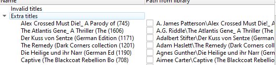Ok, found Library Maint in Calibre (I'm dumb). It gives me quite a few "extra titles" and "extra authors" - but nothing else. Can you explain what can/should be done with the info? (screenshot attached) I want to keep my title the way it is in Calibre… but want to somehow have the files not duplicate. (Again, Thanks) |