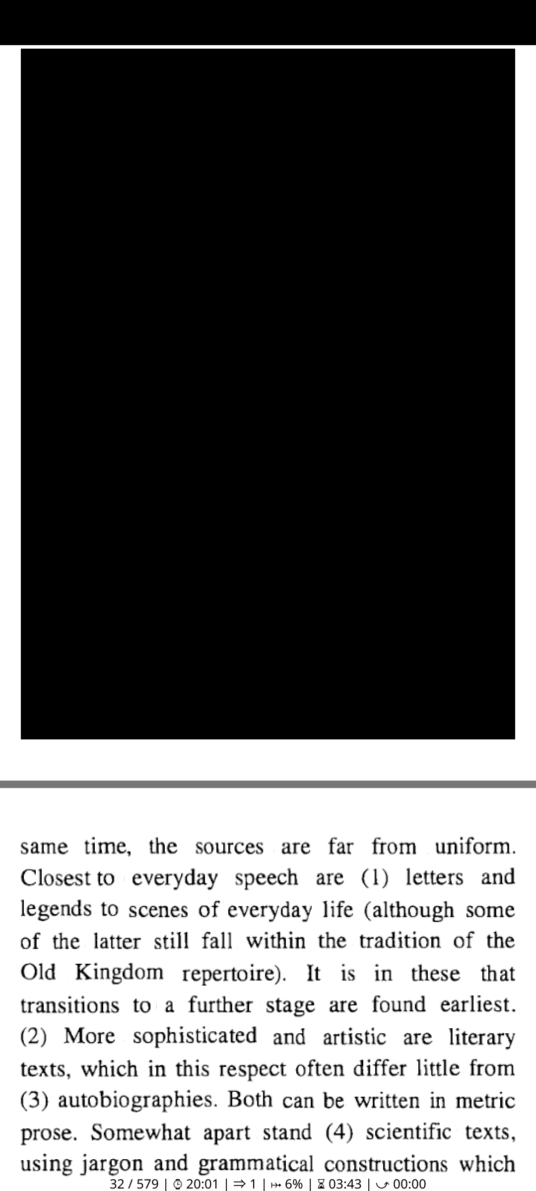 The entire text area is black - whole page except margins. When a documemt has this problem it always happens on the same pages in the affected file - no matter how many times and on which device I open it (always with Koreader of course). After dereflowing the page looks completely normal. I have more documents with this issue though not many and can send you some files If you think it'll help. I noticed this many years ago, though I've never reported it since I have always thought that it is a problem with some speciffic small subgroup of files. But it keeps reoccurring time and time again.