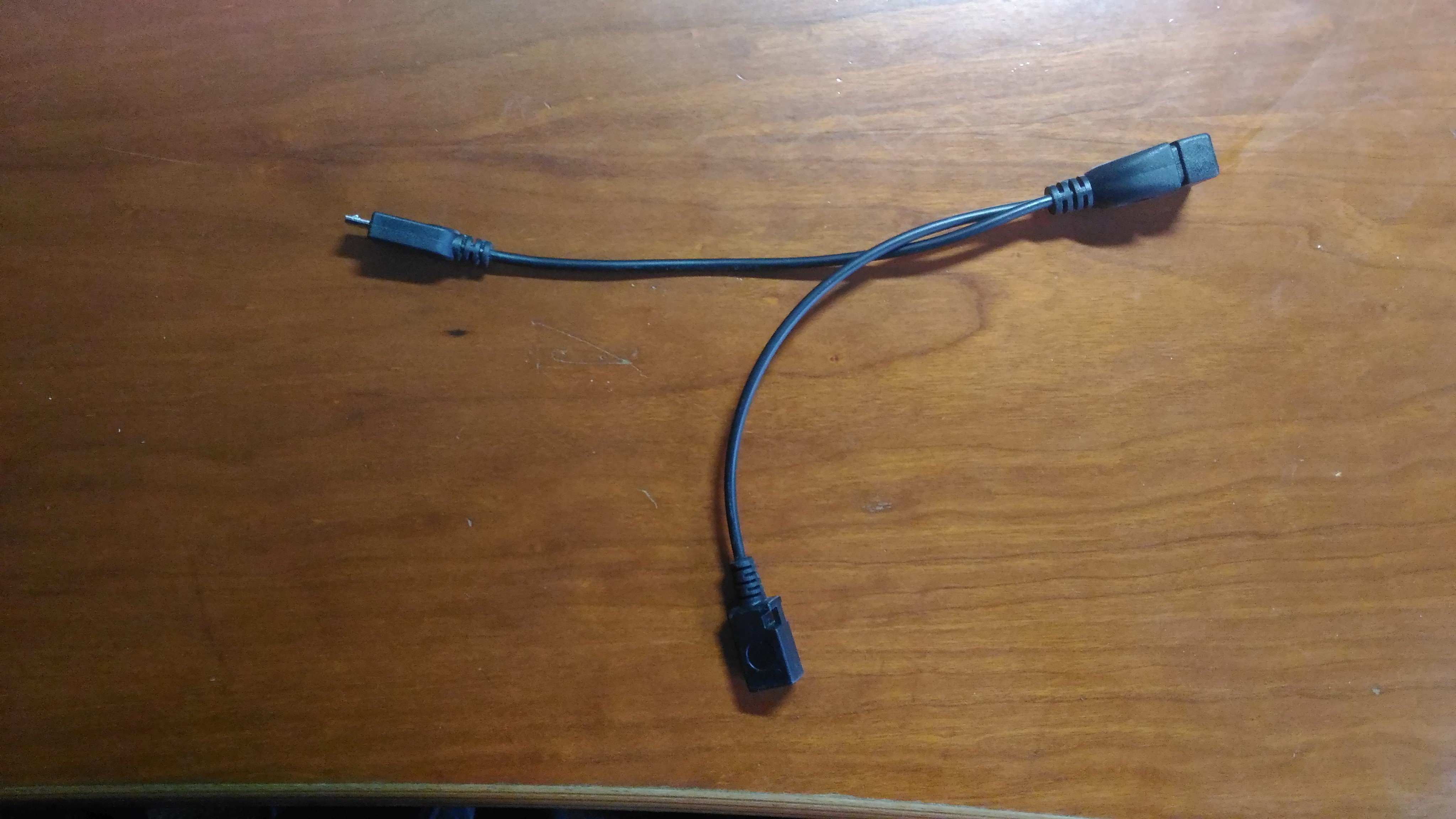 The left end has a male micro USB and goes into the Max 2. The end pointing downwards on the pictures is a female USB micro and needs a power supply from a standard charger unit. The right end has a female USB A socket and there you can plug in USB sticks, mouses etc. The power supply goes to the USB devices, not the Max 2 (Max 2 is not charged) - I have been told that charginge and supplying power to USB OTG at the same time would be impossible. On a side note: I found an old powered USB 2.0 hub and was able to connect Mouse and USB stick simultaneously. Quite a set up though: two power supplies, one for the cable, one for the hub, the cable between hub and max 2 and then of course connecting the hardware to the hub.