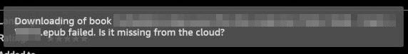 Ran into an issue trying to download a book from OneDrive. Book is on the large side, at 78,665 KB. It consistently fails with “Downloading of book <filename> failed. Is it missing from the cloud?”. Tried deleting/re-copying the book to the cloud, with the same results.