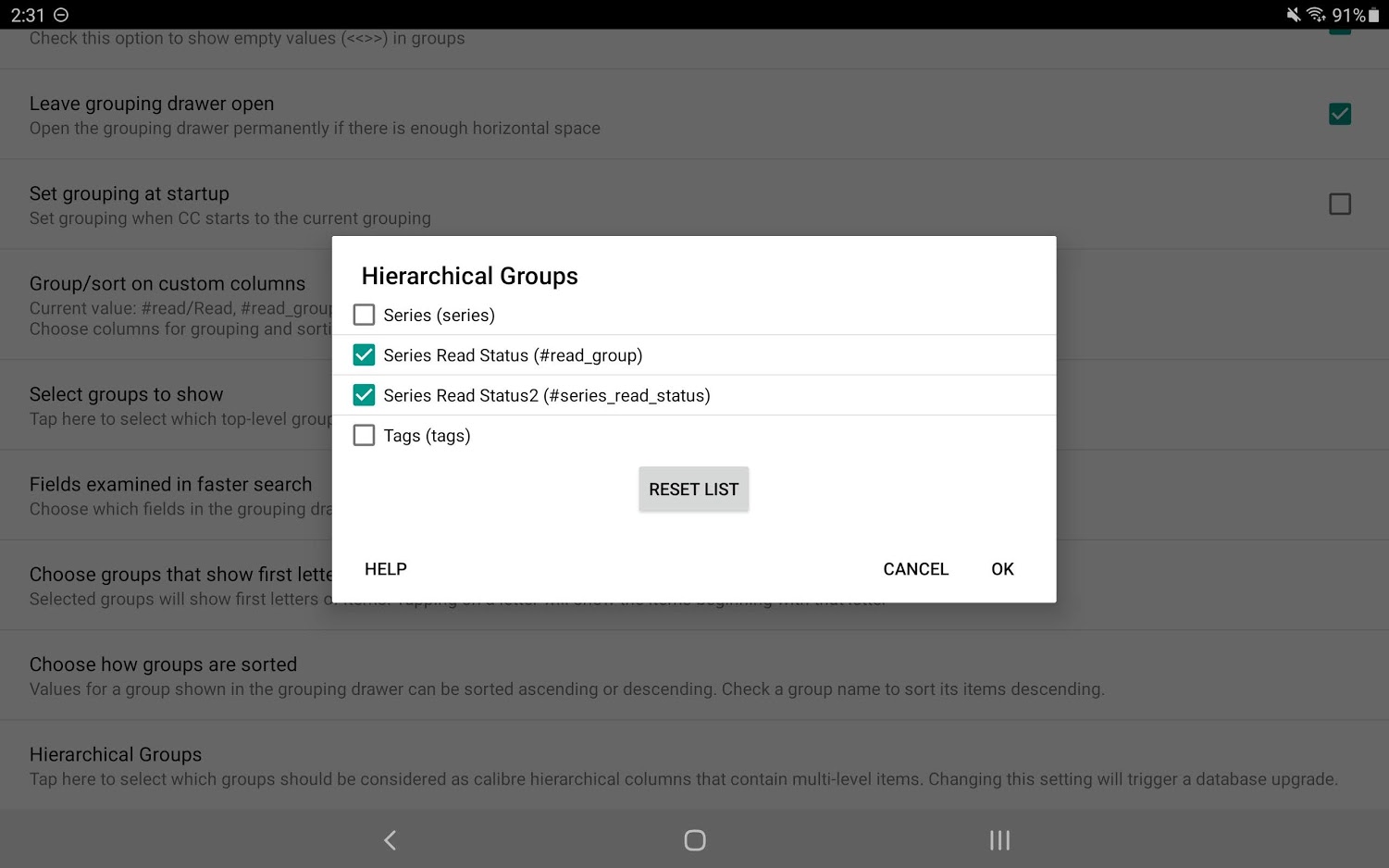 Using CC on Android and hoping to create a hierarchical grouping that shows Series and then Read/Unread status within that series.