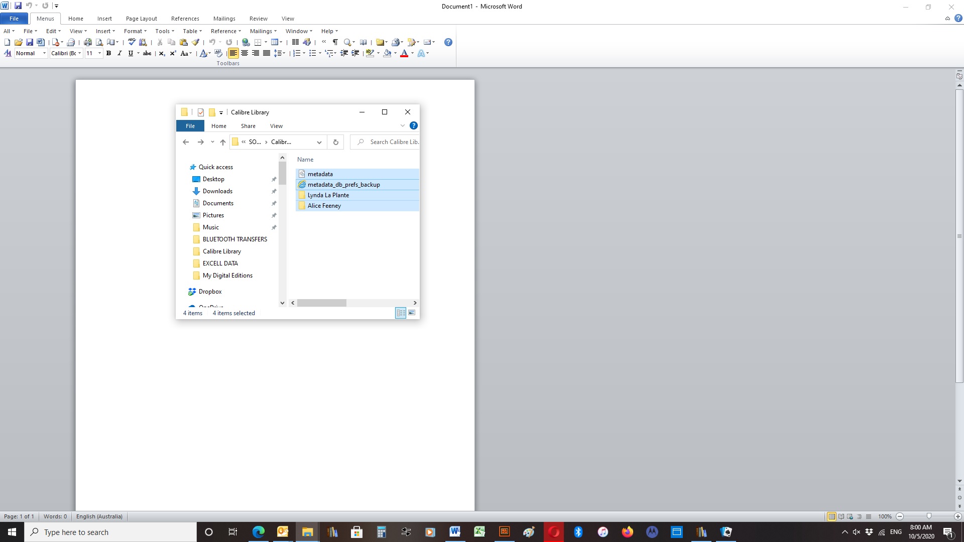 Windows 10, Calibre current version.