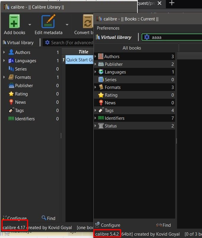 Wait, did you edit that image or are you running two versions of Calibre simultaneously? I've never been able to do that.