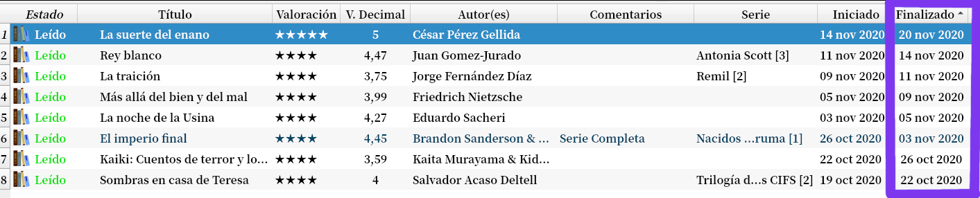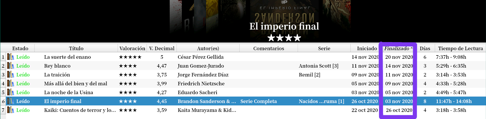 And if I wanted to know the books that I have read this month, taking into account that I have a custom column with the finished date, how would the syntax be?