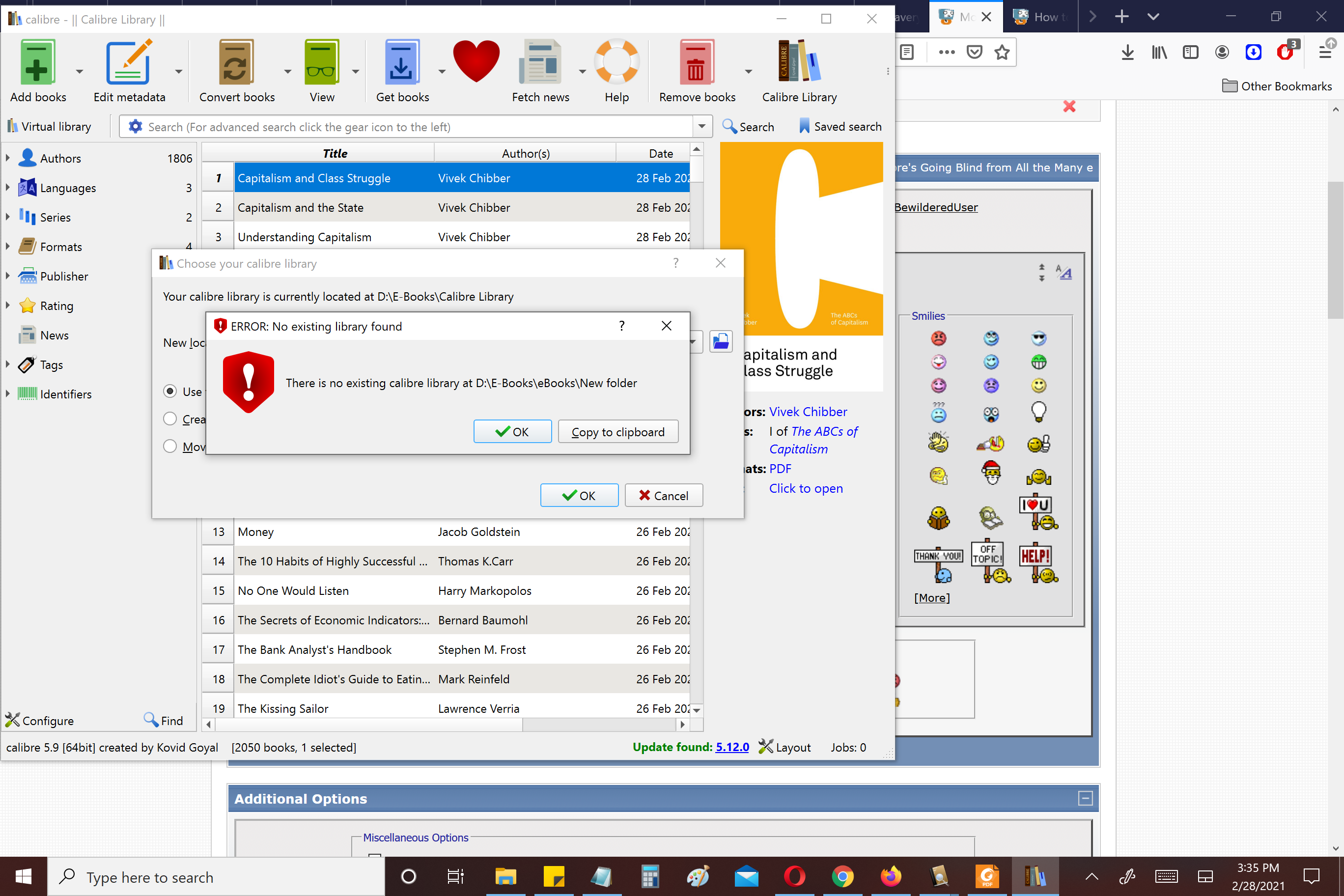 Unfortunately, Calibre's again giving me problems, now not even getting into folders it knows is there! |