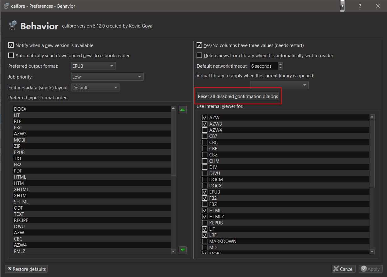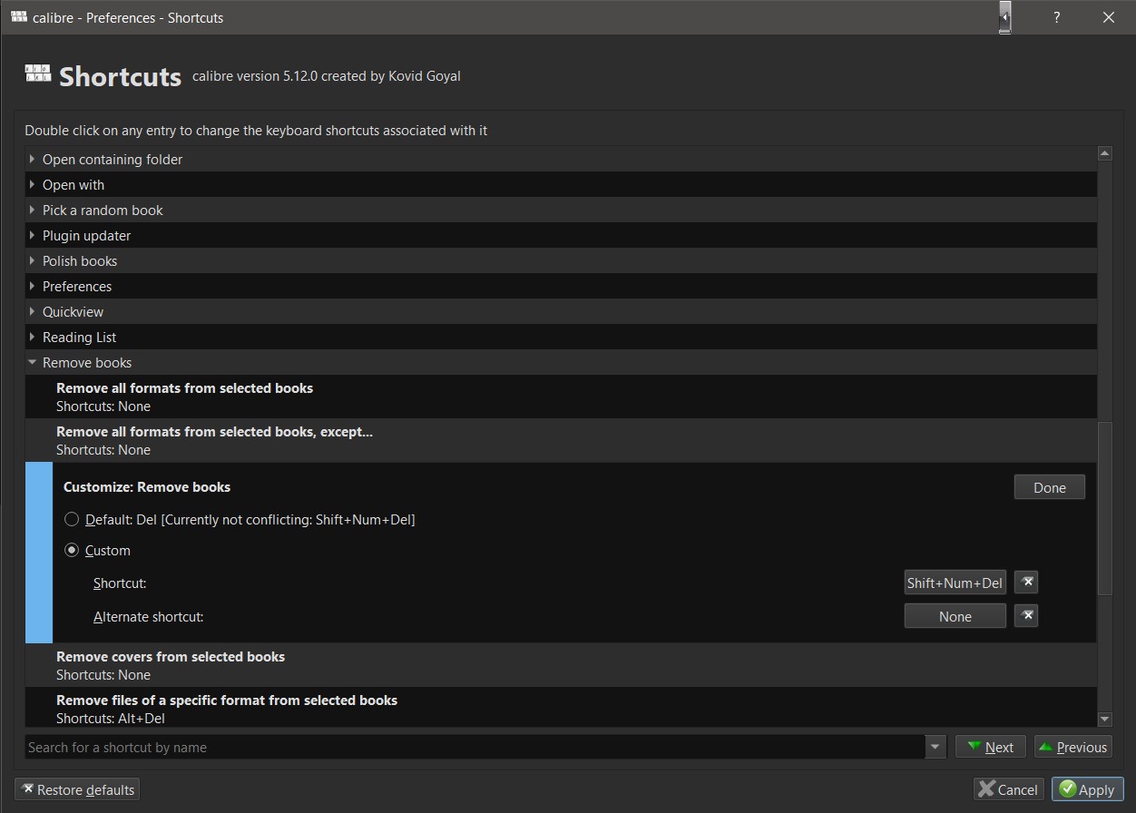 To get the warning messages back, you need to press: And/or change the keyboard shortcut for Remove Book(s) BR |