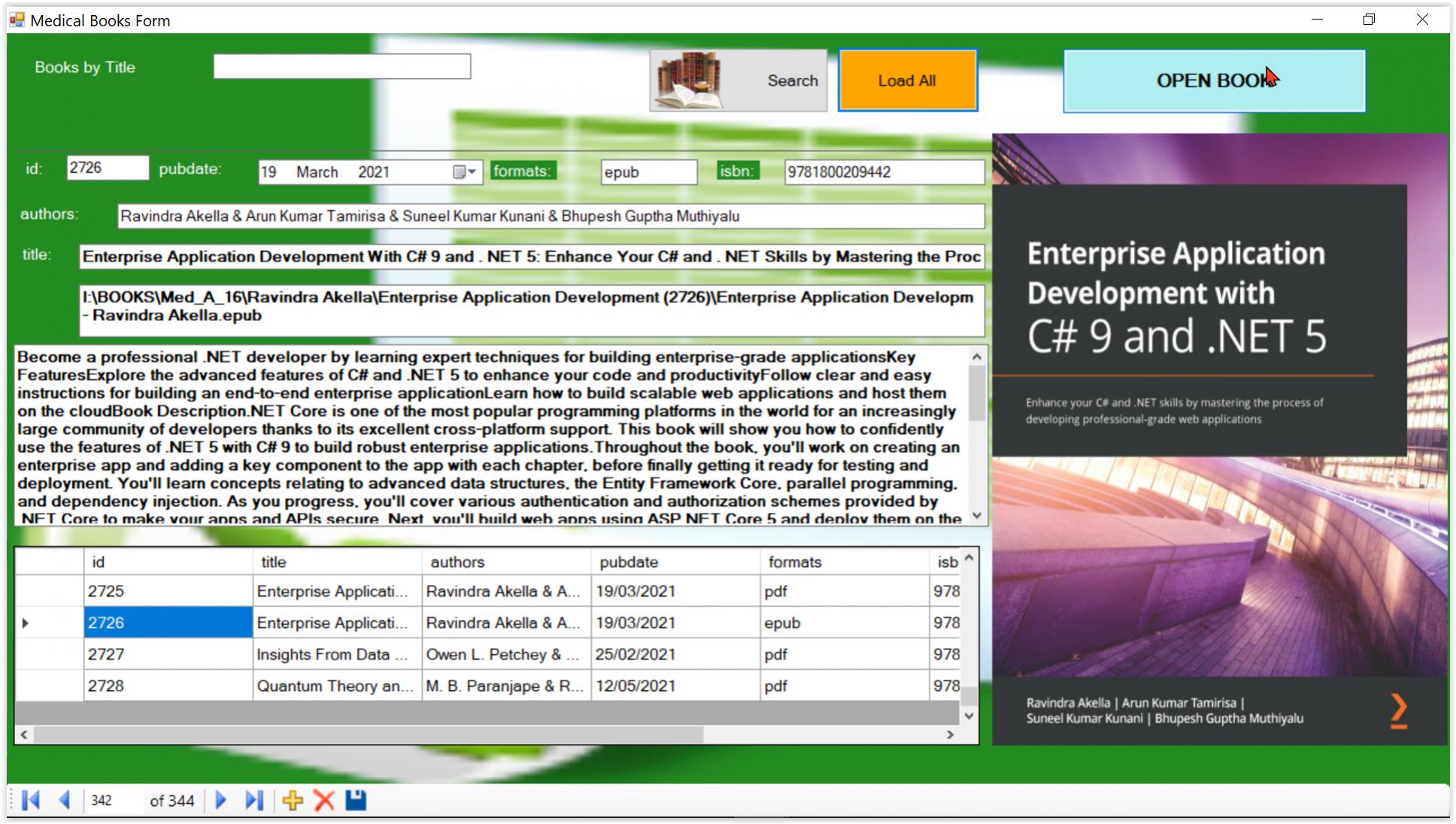 I have exported my books and articles from calibre via csv into excel files and imported it in ms sql databases. The databases use the same path of books as calibre so no duplicates of files, only the cover images have been converted in binary forms. If anybody interested can give more details. I try to post some images of my libraries made in sql and C# based on calibre libraries. All updates are runing in calibre first. I use lots of command line for adding, exporting and macros in excel for updating. |